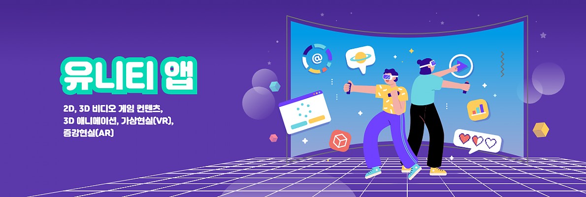 유니티란 2D, 3D 비디오 게임 컨텐츠를 제작하는 게임엔진이자 3D 애니메이션, 가상현실(VR), 증강현실(AR) 등 인터랙티브 컨텐츠 제작을 위한 툴입니다.